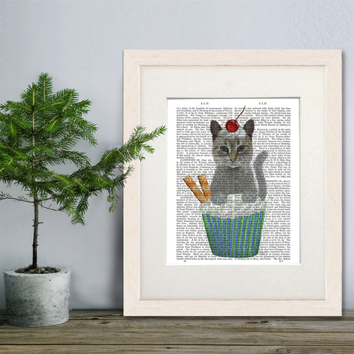 Black Cat Ice Cream Sundae, Book Print, Art Print, Wall Art