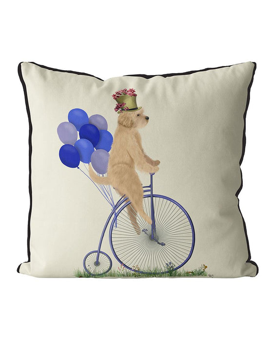 Labradoodle Blonde on Penny Farthing, Cushion / Throw Pillow