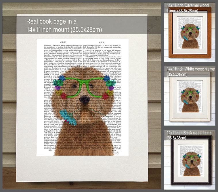 Labradoodle Golden and Flower Glasses, Book Print, Dog Art Print, Wall Art