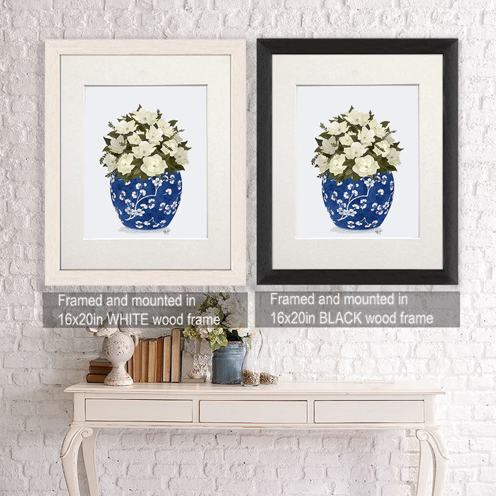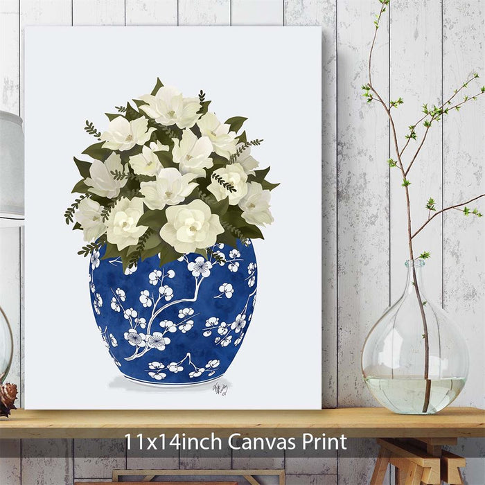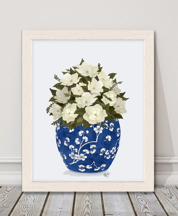 Chinoiserie Magnolias White, Blue Vase, Art Print