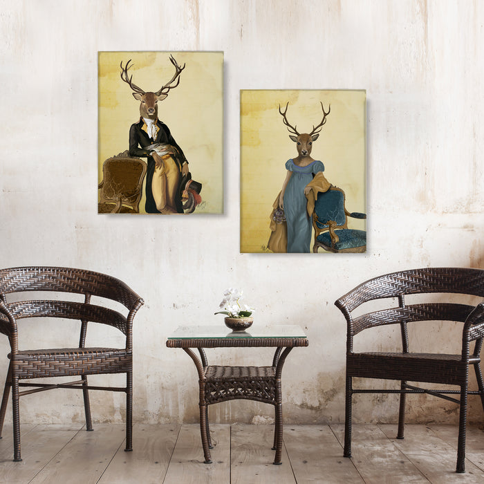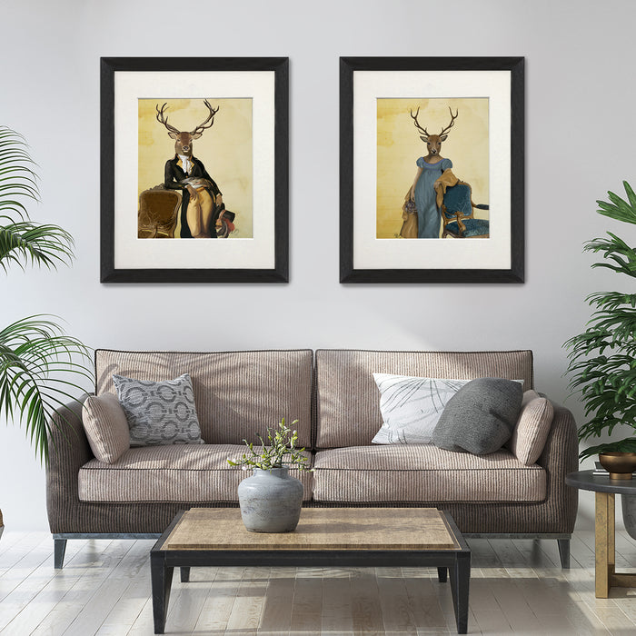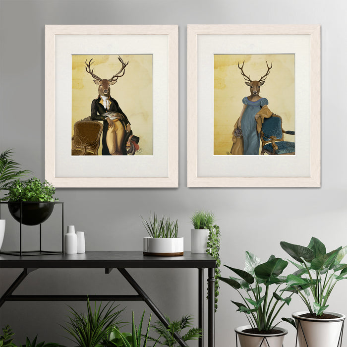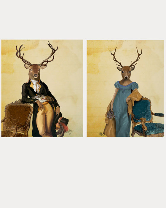Collection - 2 prints, Regency deer and chair couple Art Print
