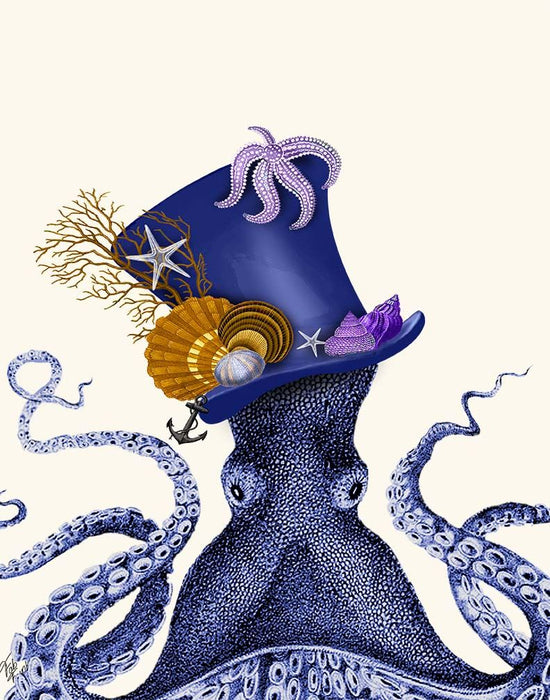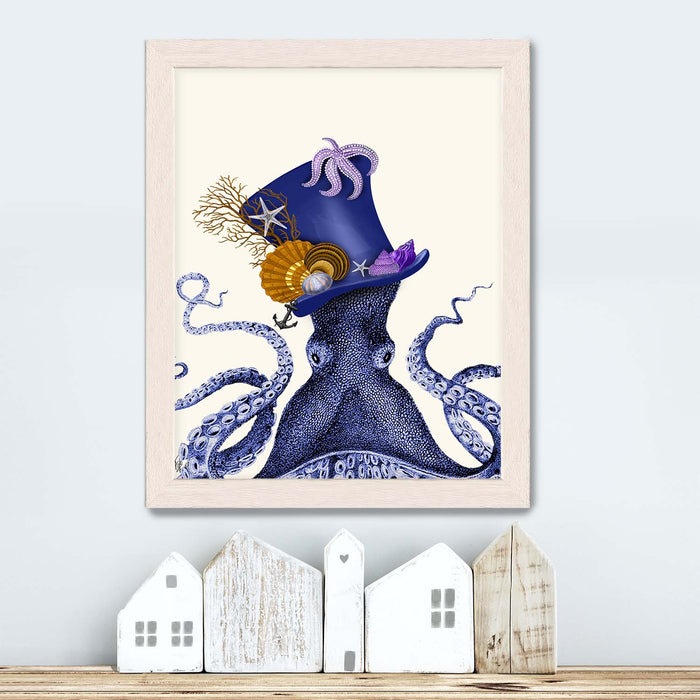 Octopus, Nautical Hat, Nautical print, Coastal art
