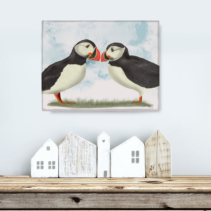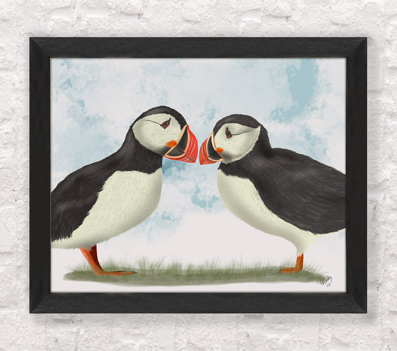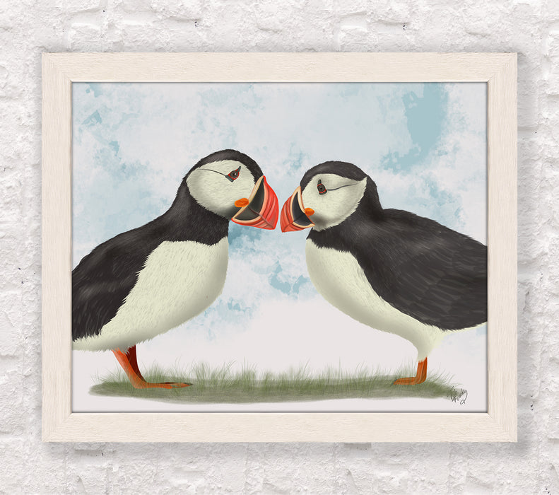 Puffin Love, Valentines Art Print, Coastal Wall Art
