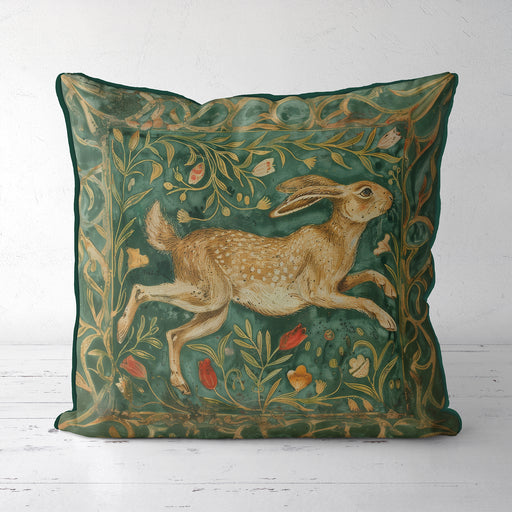 Original price $179.00 - Original price $235.00Original price$179.00 - $235.00$179.00 - $235.00Current price $179.00| /Add a dash of medieval whimsy to your home with this luxurious velvet cushion featuring playful hares leaping among golden florals. Set against a r...