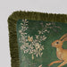 Add timeless elegance to your space with this luxurious velvet cushion, featuring beautifully detailed hares, framed with sumptuous fringe. This design exudes sophistication with a touch of medieval charm.