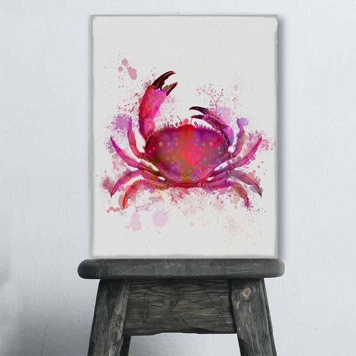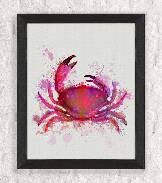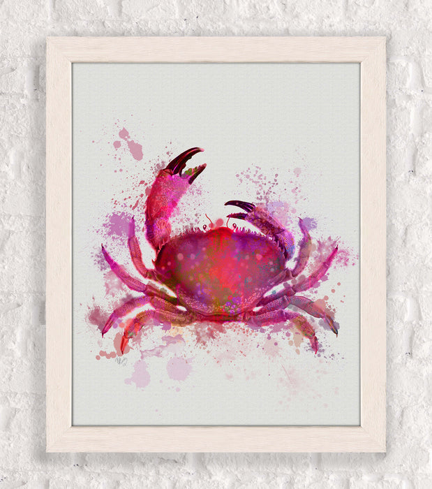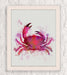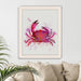 Print of a coastal crab in a blue or pink watercolour style