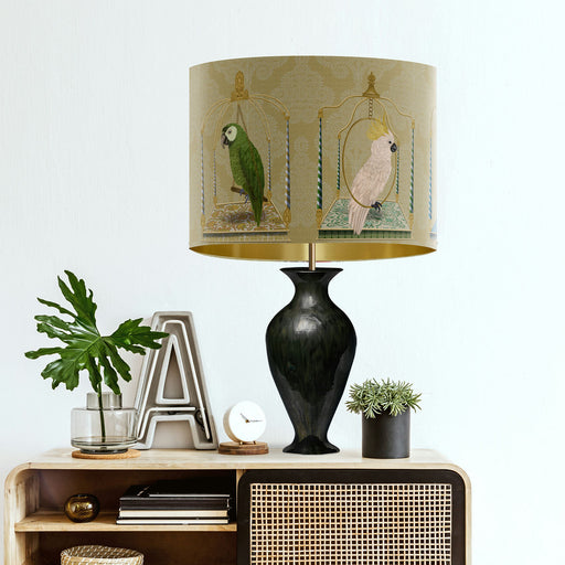 Parrots on swings, Charcoal, Gold Lined Wholesale Lampshade