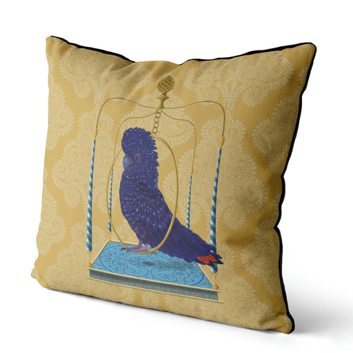 Blue Cockatoo on Swing, Bird Cushion / Throw Pillow
