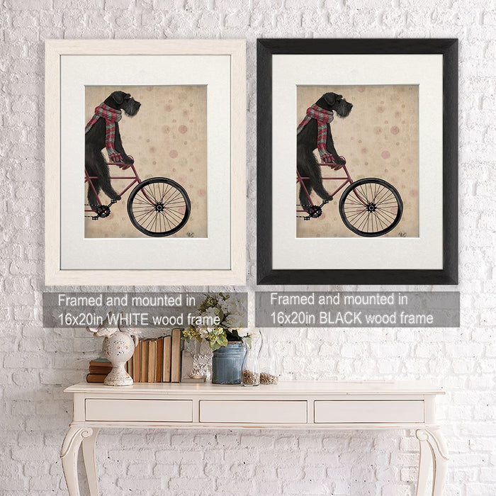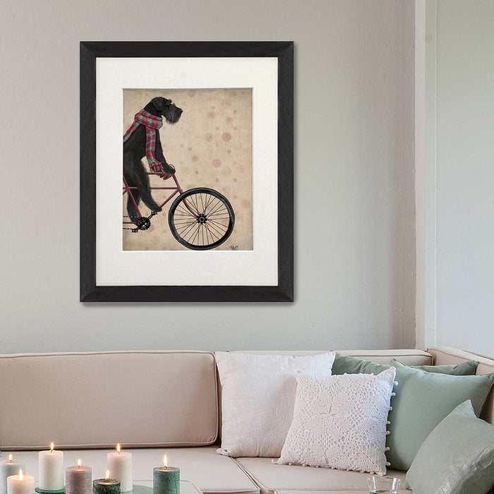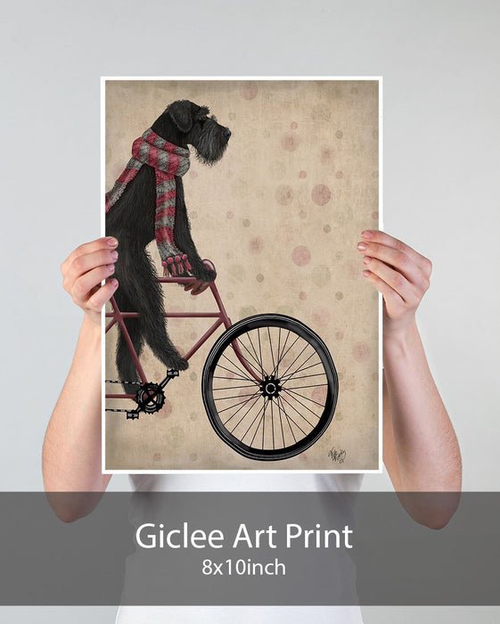 Schnauzer on Bicycle, Black, Dog Art Print, Wall art
