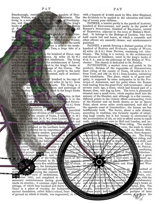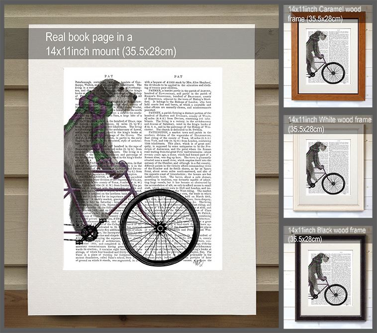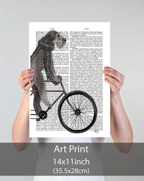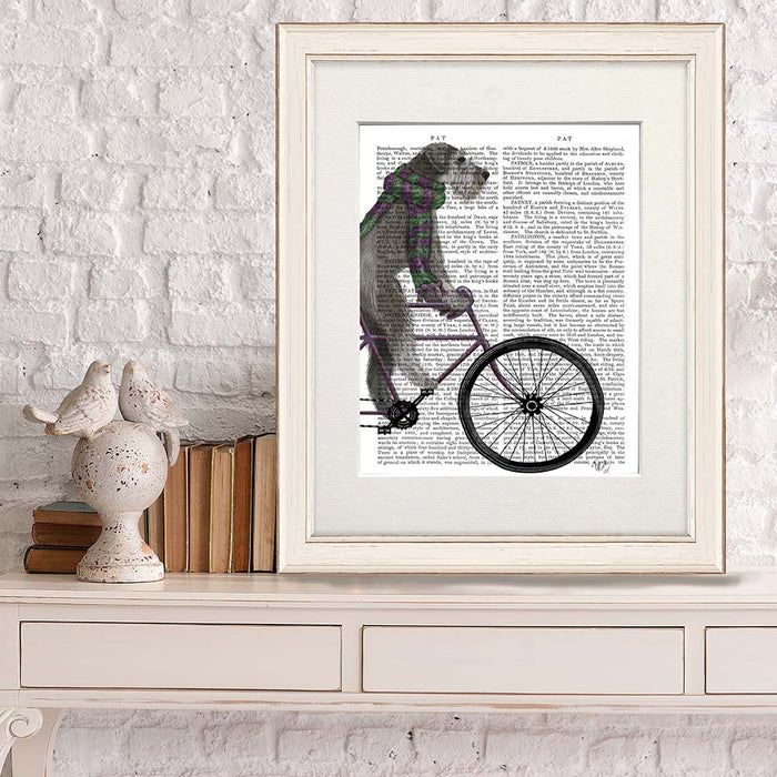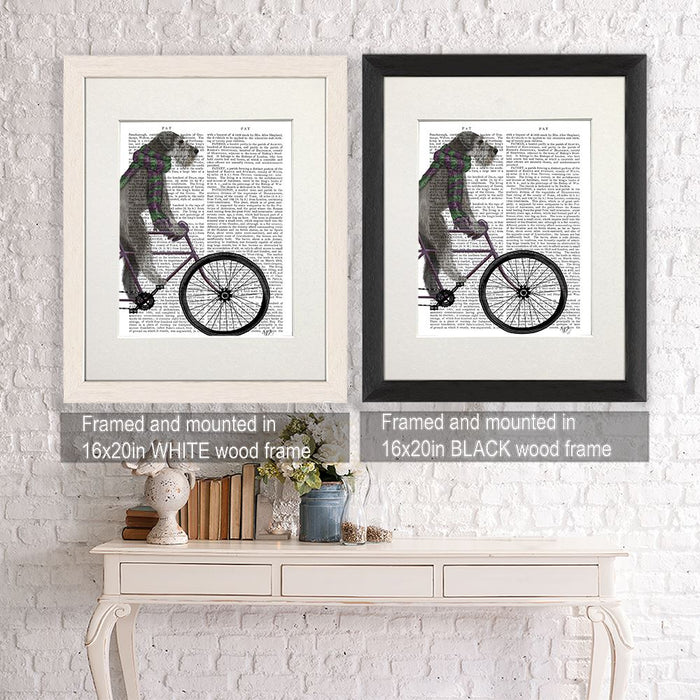 Schnauzer on Bicycle, Grey, Book Print, Dog Art Print, Wall Art
