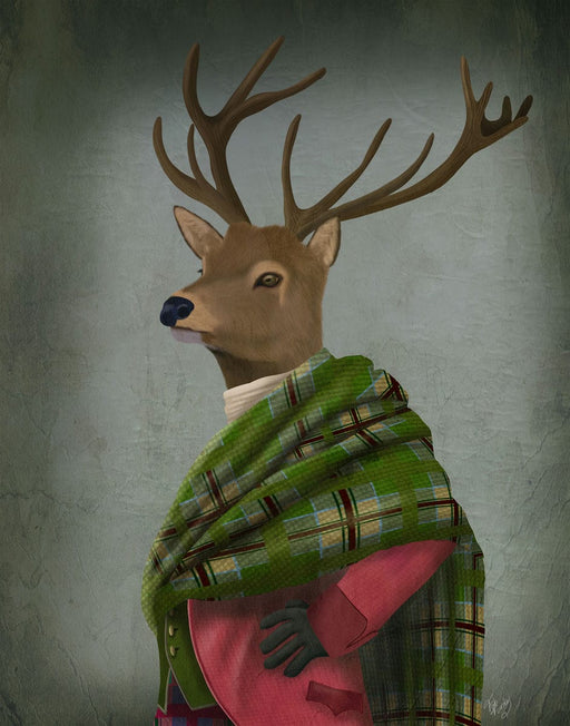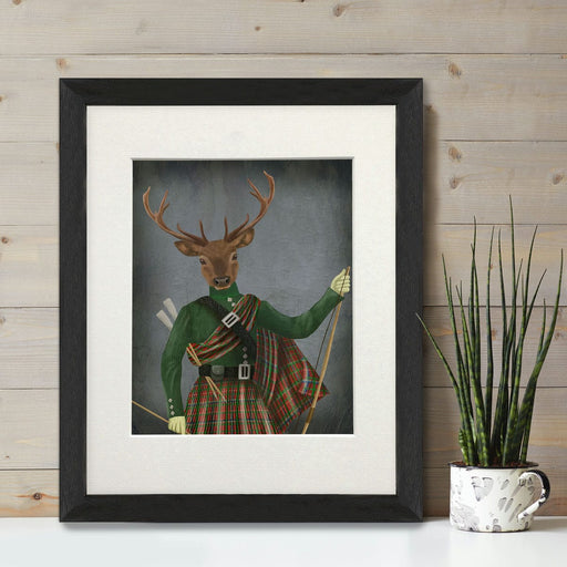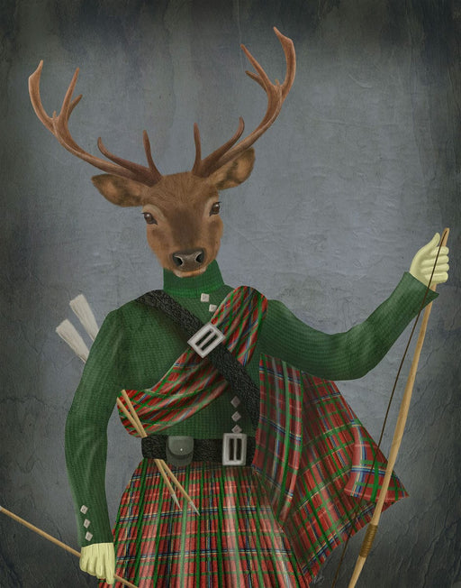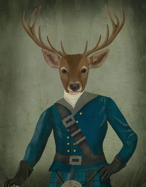 Scottish Deer Colonel Hamish Haggis, Portrait, Art Print, Canvas, Wall Art