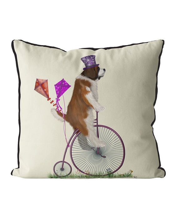 St Bernard on Penny Farthing, Cushion / Throw Pillow
