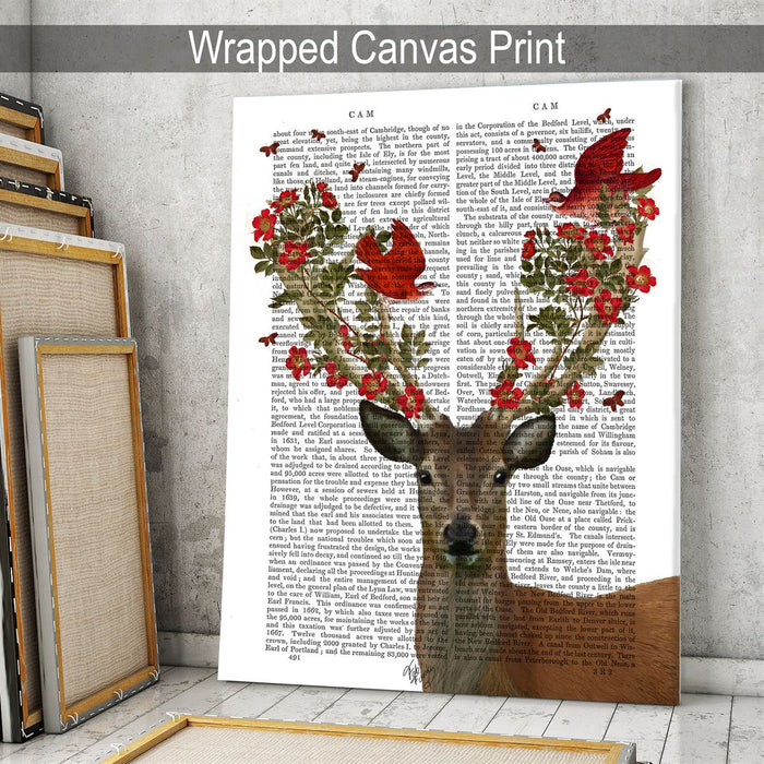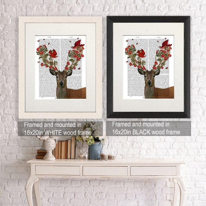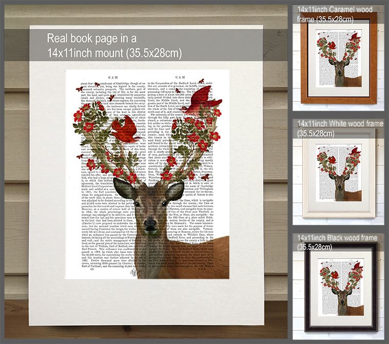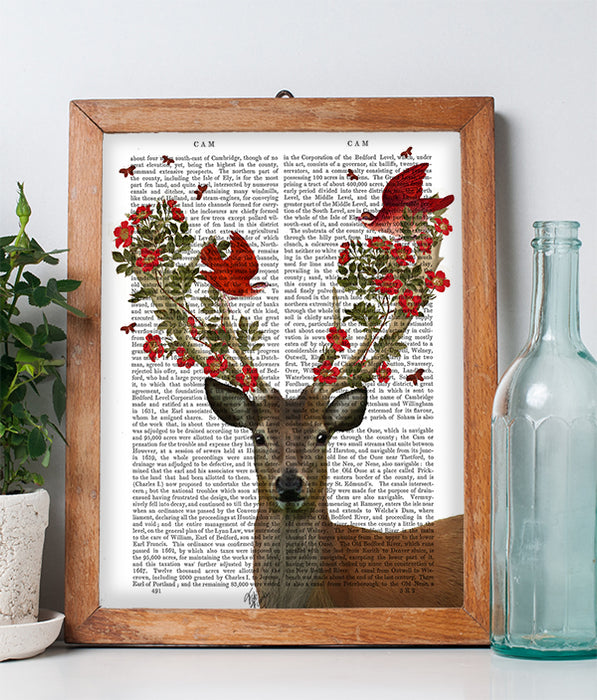 Deer and Love Birds, Book Print, Art Print, Wall Art