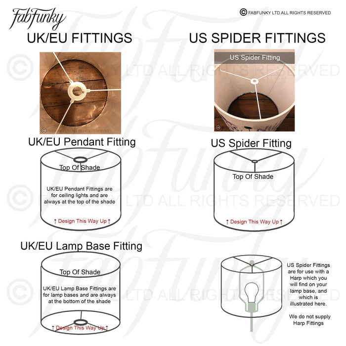 Ref internal fittings: UK/Euro and US spider fittings are available and you can specify which you want when you order - the options are as follows:
