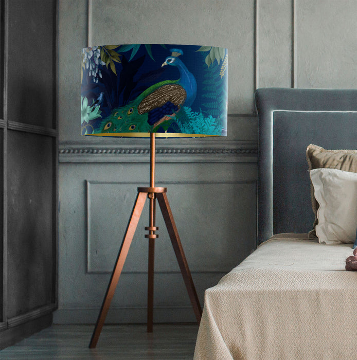 Peacock Garden, Blue, Gold Lined Wholesale Lampshade