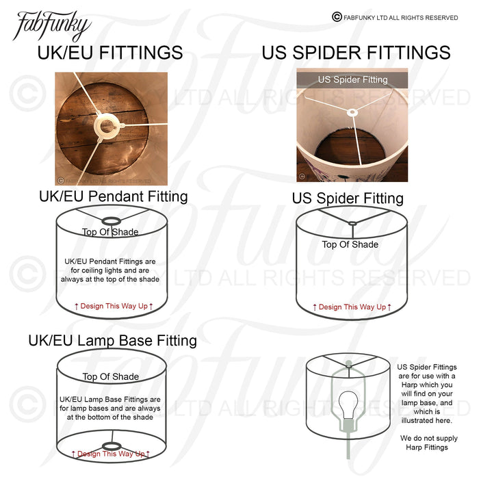 Ref internal fittings: UK/Euro and US spider fittings are available and you can specify which you want when you order - the options are as follows: