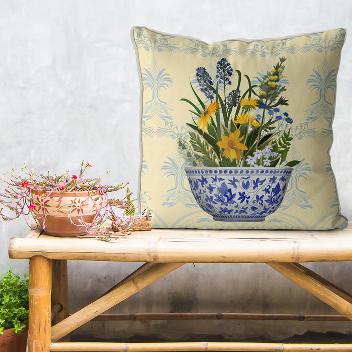 Chinoiserie Bowl with Wild Flowers 1, Cushion / Throw Pillow
