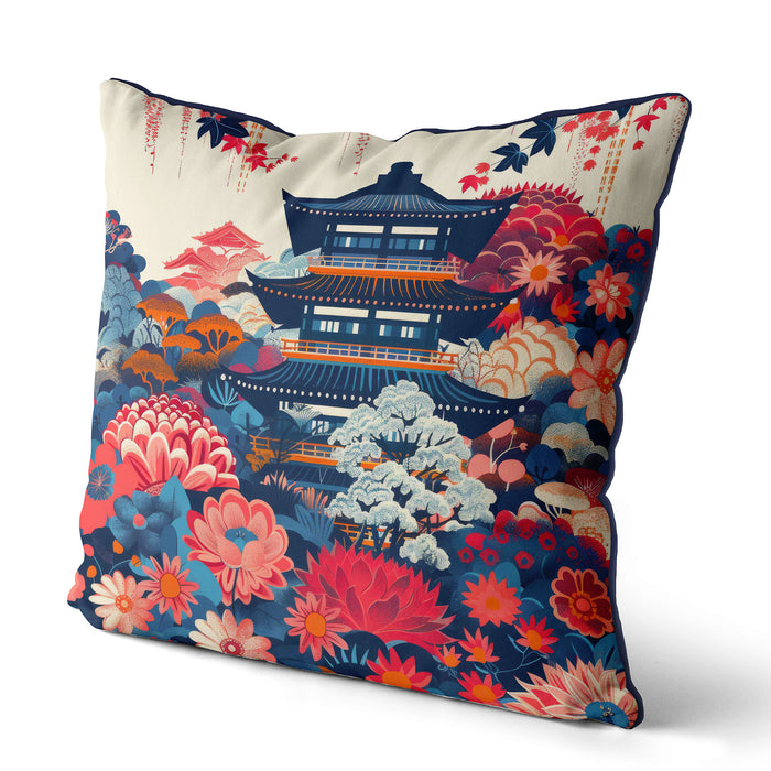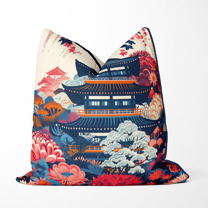 Chinoiserie Pagoda Cushion Throw Pillow Cover: Floral Ascent