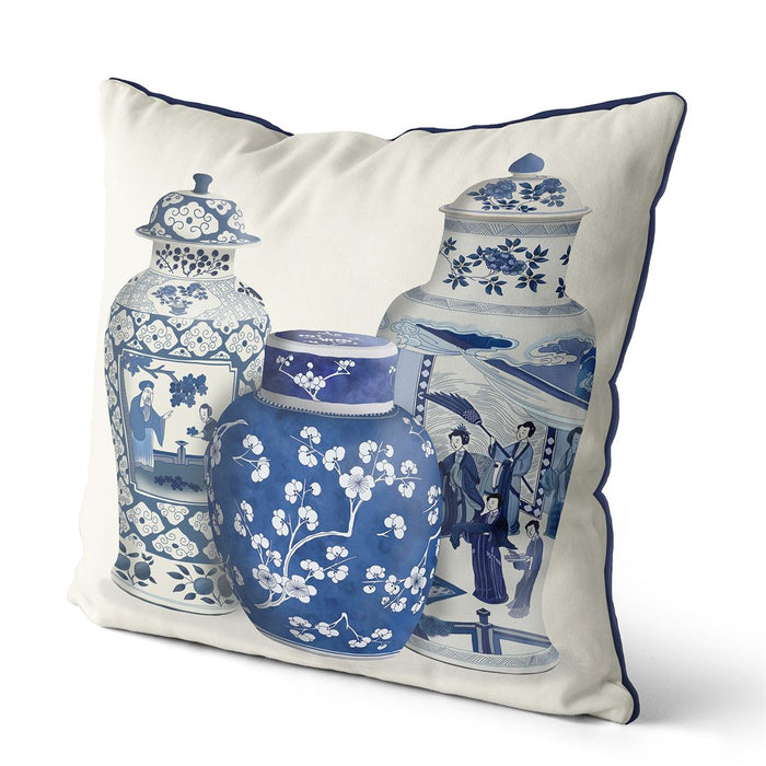Chinoiserie Vase Trio 2, Cushion / Throw Pillow