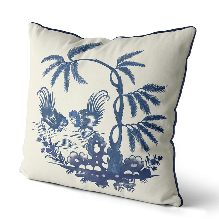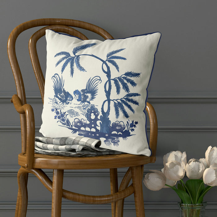 Cockerel Duo, Chinoiserie Cushion / Throw Pillow