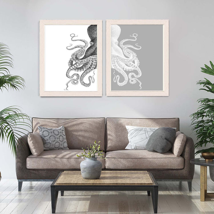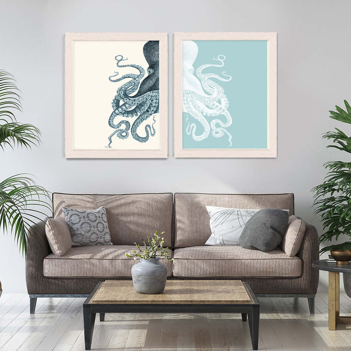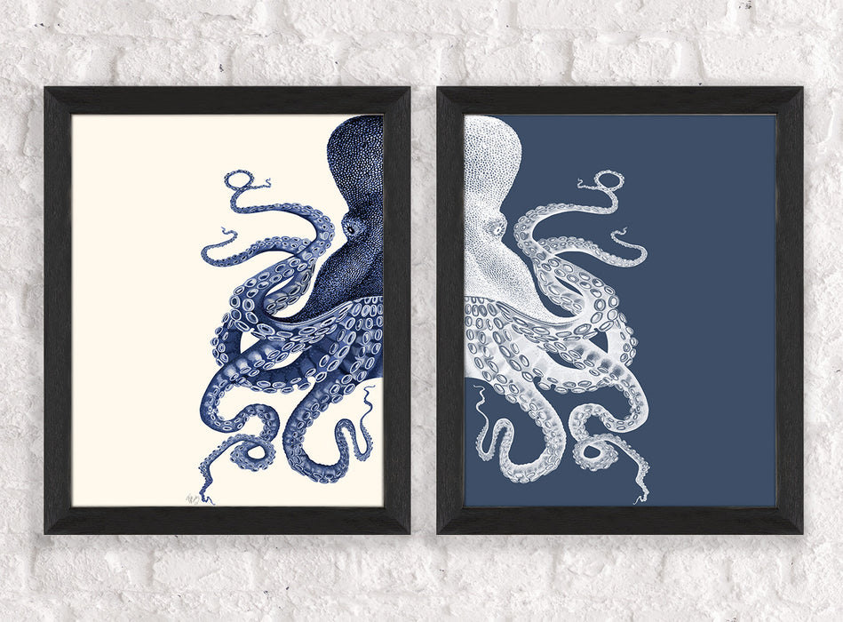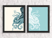 Collection - 2 Prints, Octopus, Navy Blue and Cream or Other Colour Options, Nautical print, Coastal art