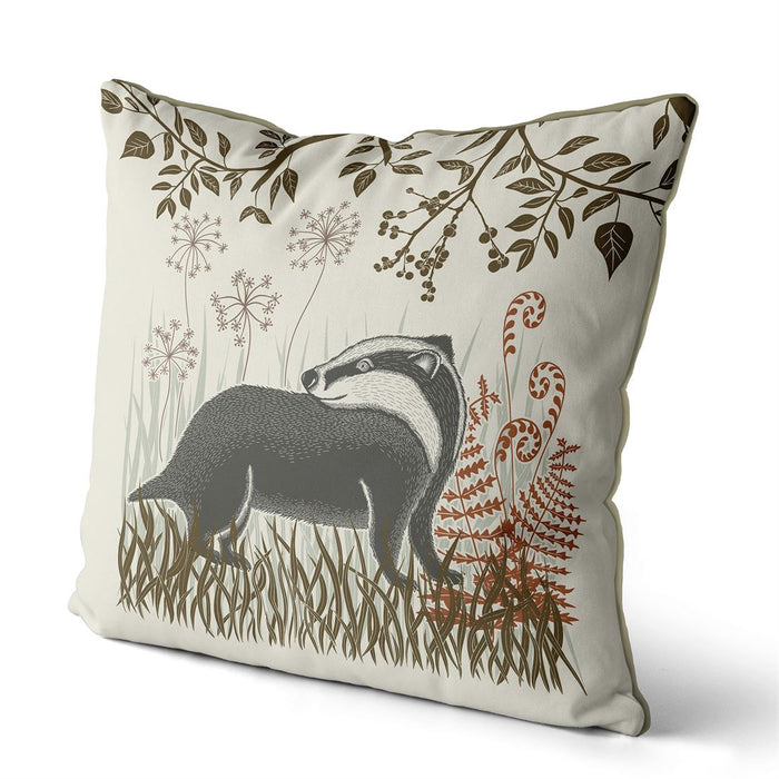 Bring the British countryside into your home with this lovely country style, woodland cushion. The striking hand drawn design on this covers features one of our lovely badgers, and is part of our Country Lane Collection that includes foxes, badgers, hares, owls, squirrels and hedgehogs. All of which are available in 3 different colours each.
