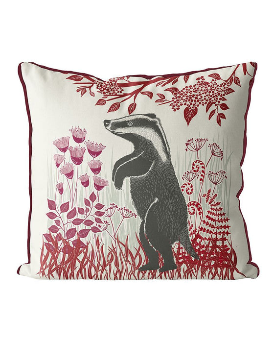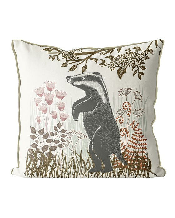 Bring the British countryside into your home with this lovely country style, woodland cushion. The striking hand drawn design on this covers features one of our lovely badgers, and is part of our Country Lane Collection that includes foxes, badgers, hares, owls, squirrels and hedgehogs. All of which are available in 3 different colours each.