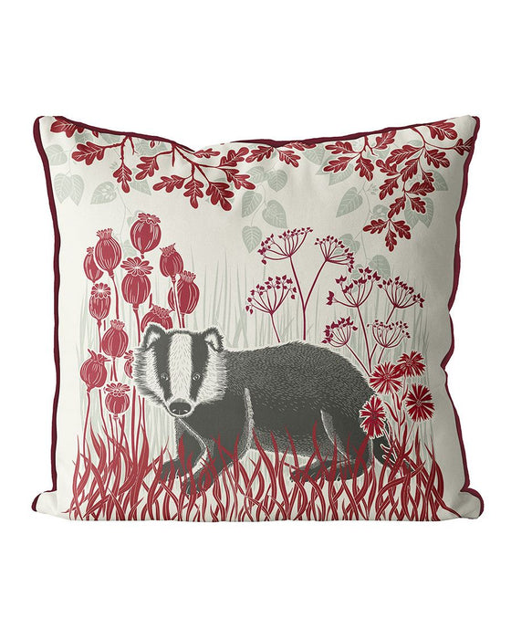 Bring the British countryside into your home with this lovely country style, woodland cushion. The striking hand drawn design on this covers features one of our lovely badgers, and is part of our Country Lane Collection that includes foxes, badgers, hares, owls, squirrels and hedgehogs. All of which are available in 3 different colours each.