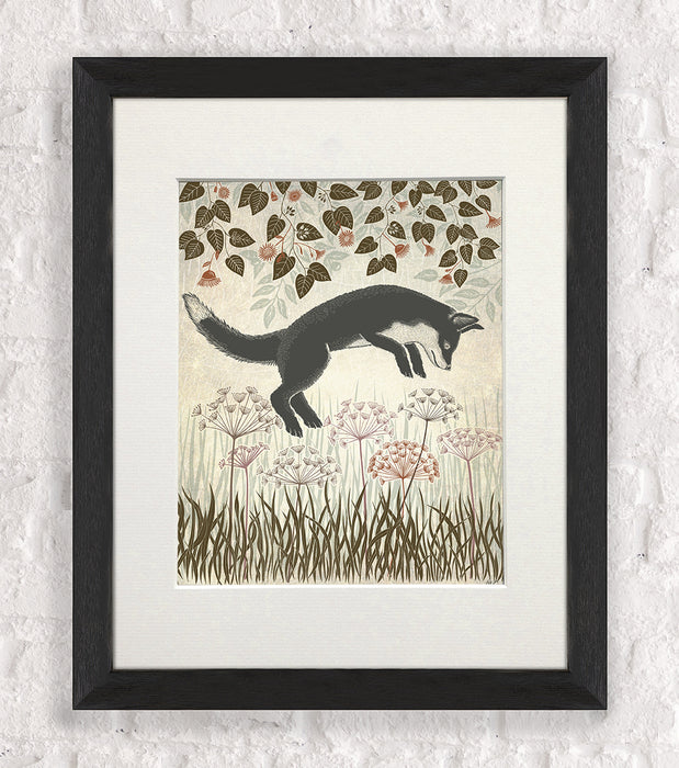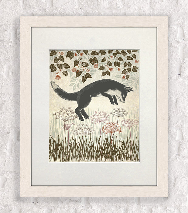 A 14x11inch (35.5×28 cm) giclee print. Printed onto heavyweight textured fine art paper, mounted into a bevelled mat with a backing board.