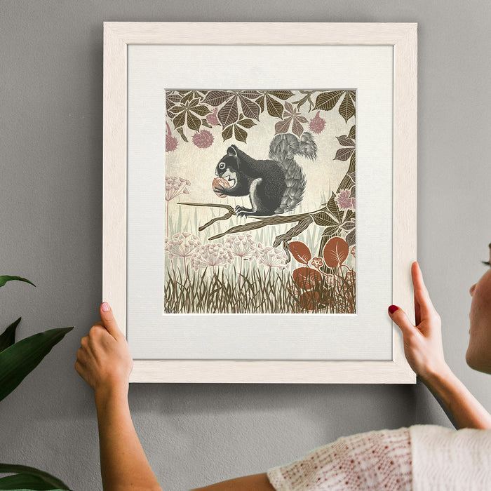 A 14x11inch (35.5×28 cm) giclee print. Printed onto heavyweight textured fine art paper, mounted into a bevelled mat with a backing board.