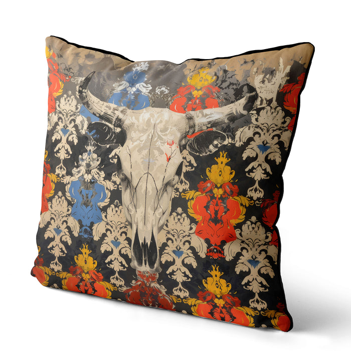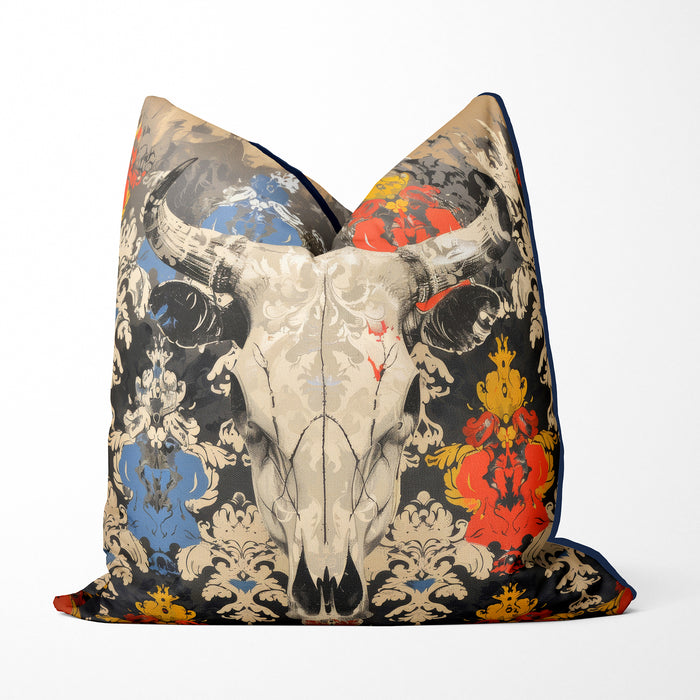 This skull cushion is a standout piece in any room, the macabre beauty of the skull combined with it's ornate, baroque-inspired colourful background is perfect for adding a touch of cowboy edgy sophistication and cultural fusion.