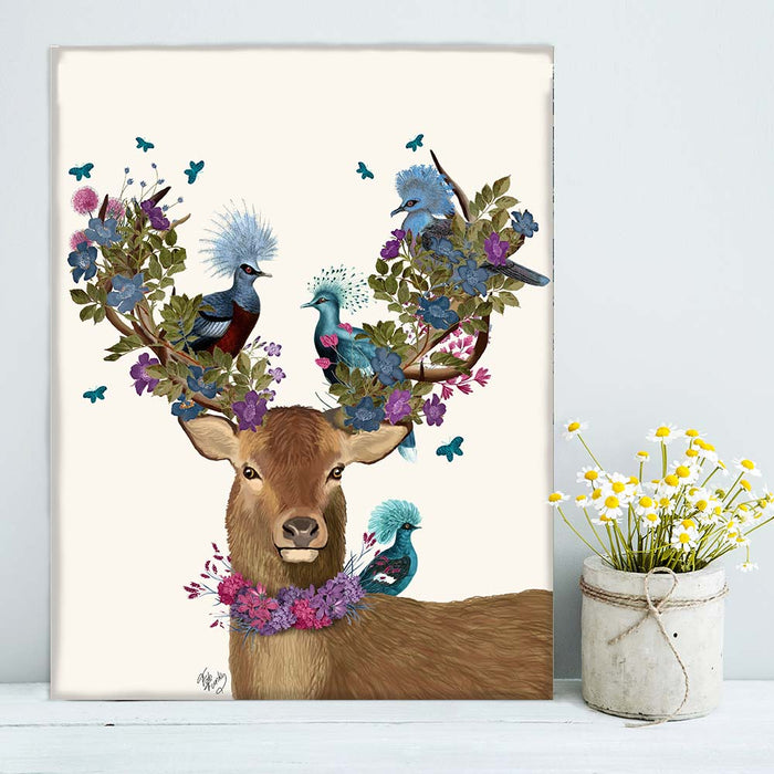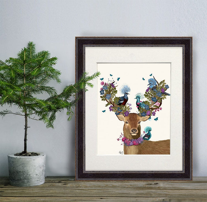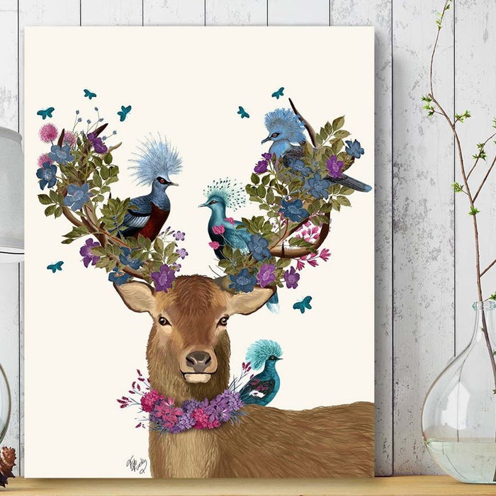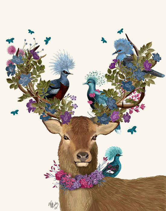 Deer Birdkeeper, Blue Pigeons, Art Print, Canvas Wall Art