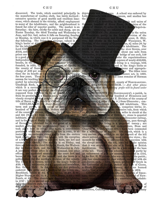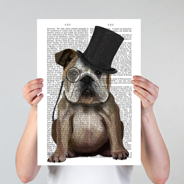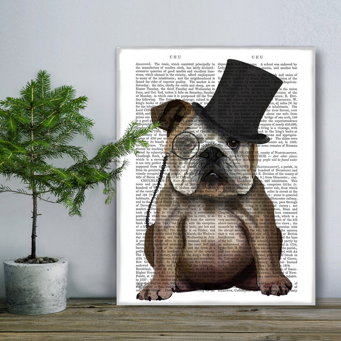 English Bulldog Formal Hound and Hat Dog Book Print, Art Print, Wall Art