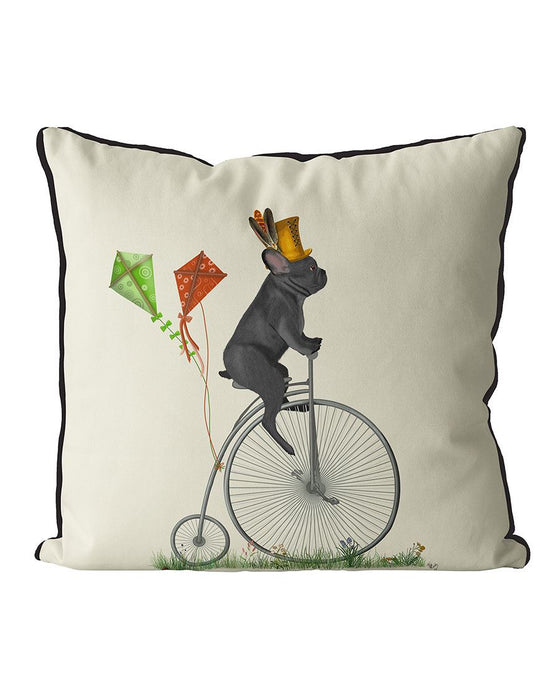 French Bulldog Black on Penny Farthing, Cushion / Throw Pillow