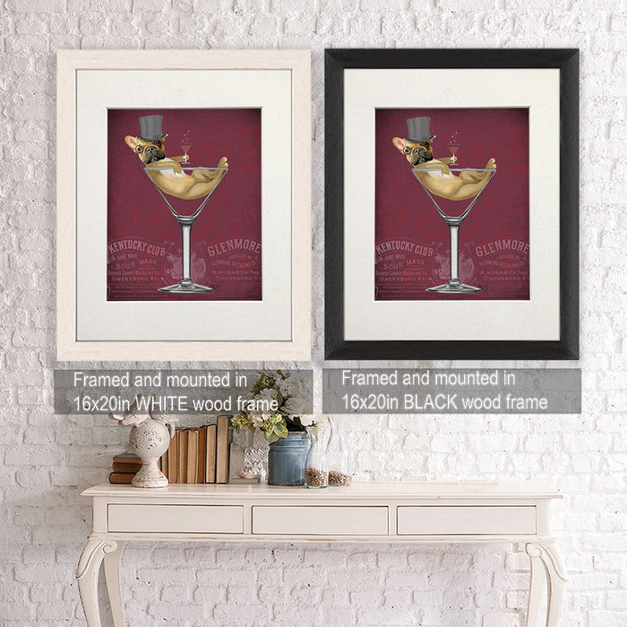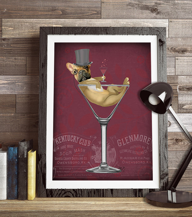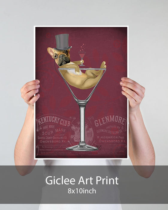 French Bulldog, Brown in Martini Glass - Red, Dog Art Print, Wall art