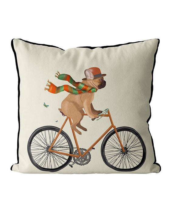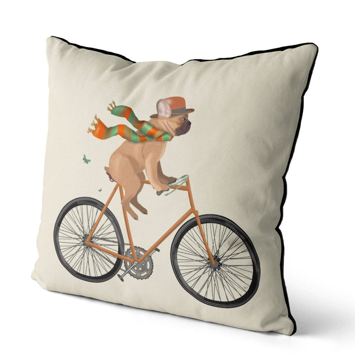 French Bulldog on Bicycle, Cushion / Throw Pillow