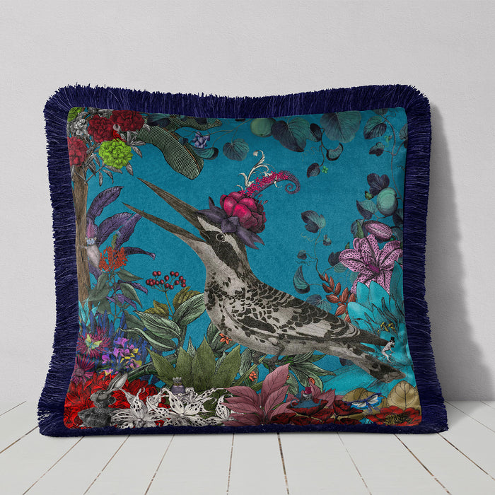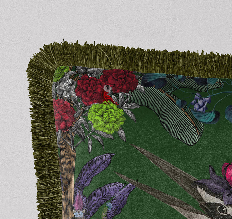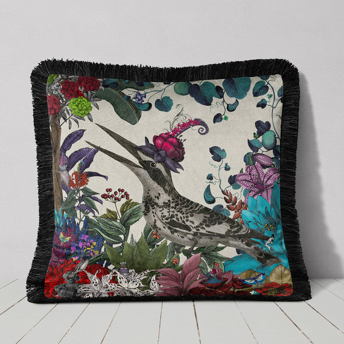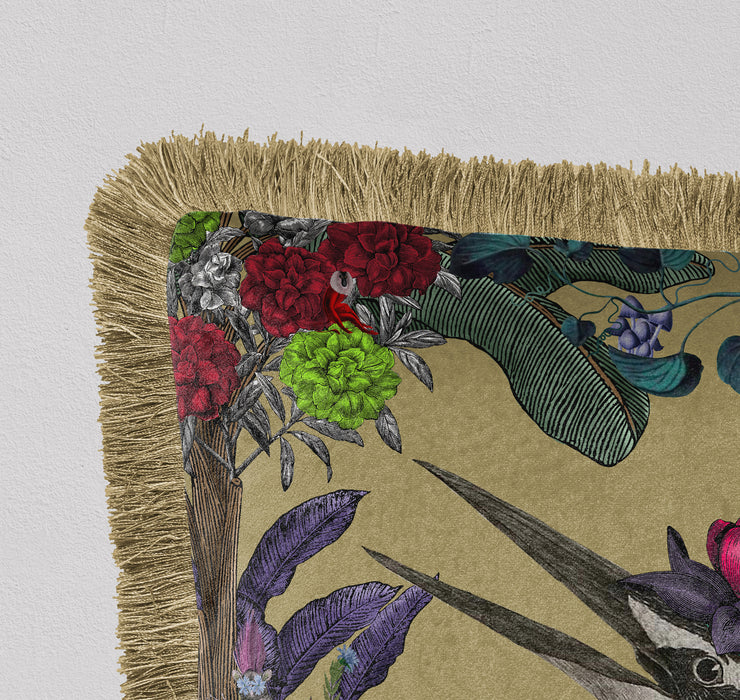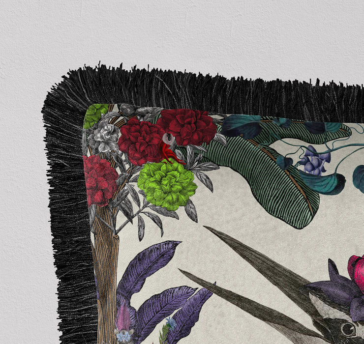 From our Glorious Plumes Collection, the design features a fabulously plumed bird set amongst a colourful botanical scene. But look more closely and you will find other fantastical creatures inhabit this realm, hidden away in between the brightly coloured flowers and leaves.