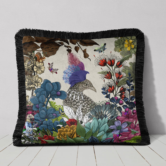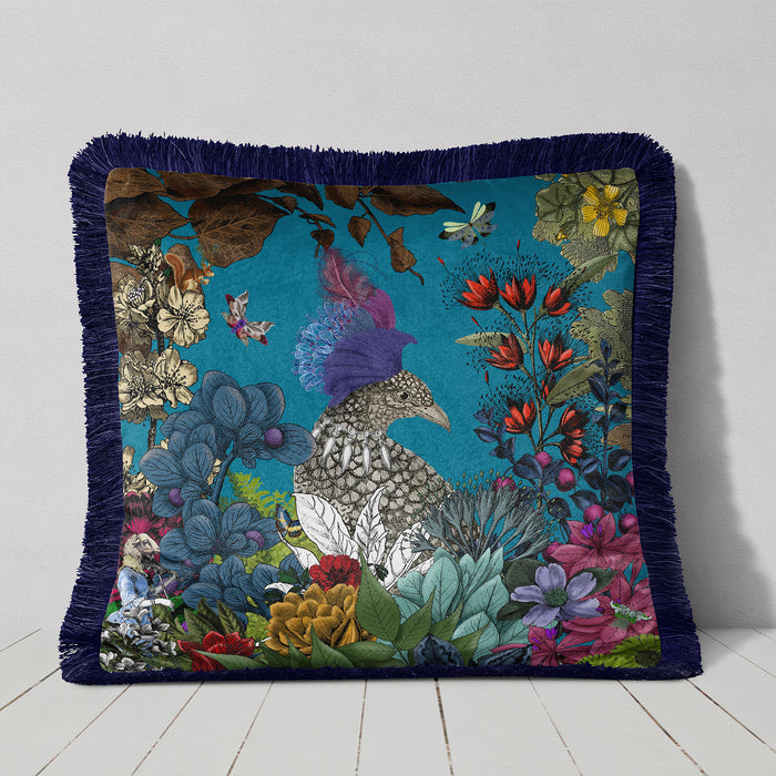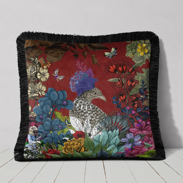 Our Glorious Plumes Cushion Collection comes in six different colour backgrounds and there are six different designs. Here we have our luxury velvet fringed cushions, you will also find this design in our Classic Cotton/Linen range, Our Outdoor Water Resistant range or our lampshade range. So you have a lot to choose from.