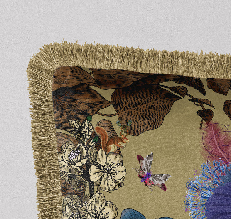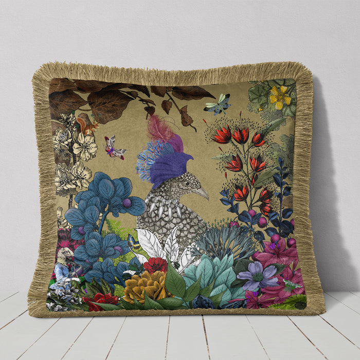 From our Glorious Plumes Collection, the design features a fabulously plumed bird set amongst a colourful botanical scene. But look more closely and you will find other fantastical creatures inhabit this realm, hidden away in between the brightly coloured flowers and leaves.