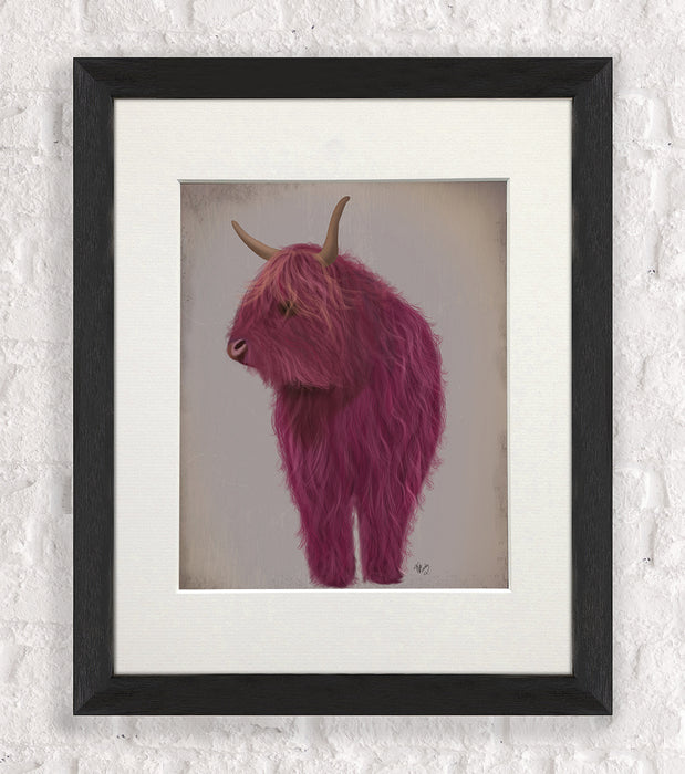 Highland Cow 4, Pink, Full, Animal Art Print