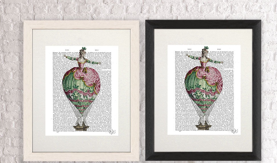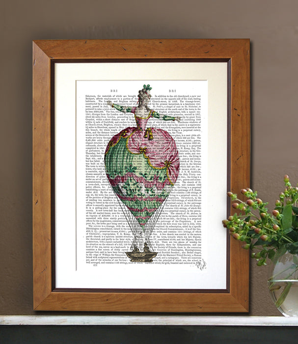 18th century Hot Air Balloon Woman 2, Book Print, Art Print, Wall Art
