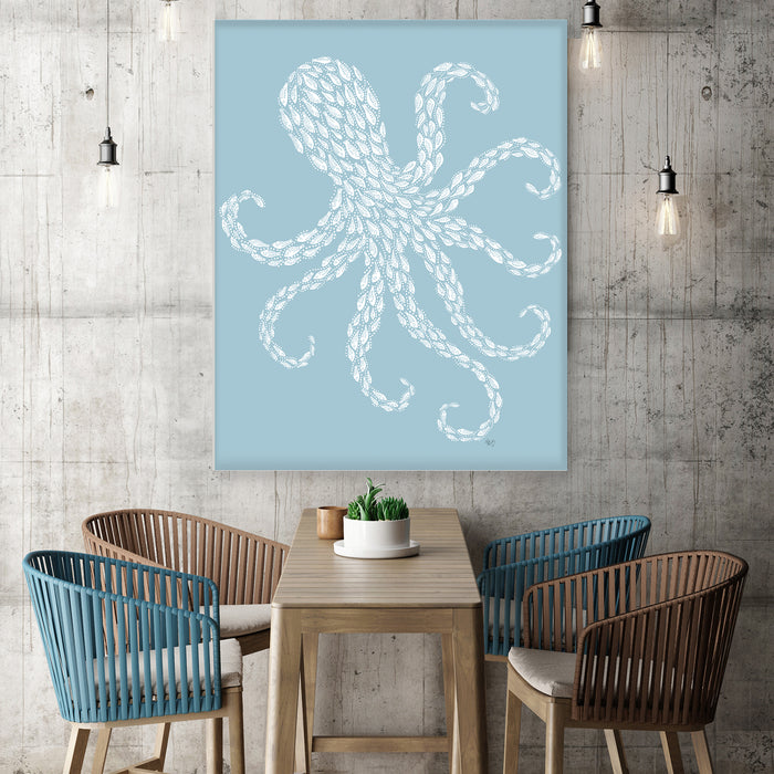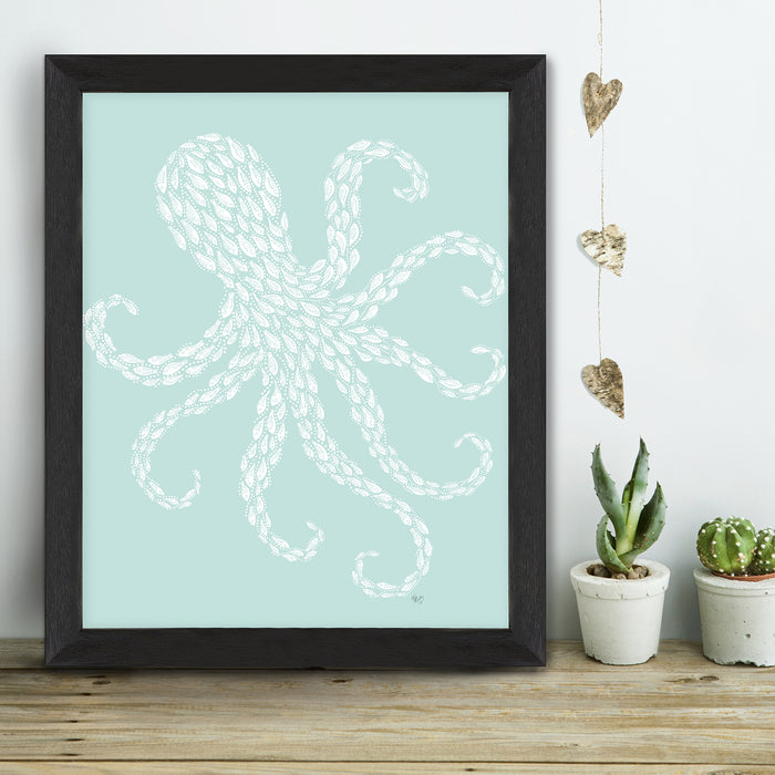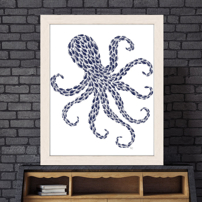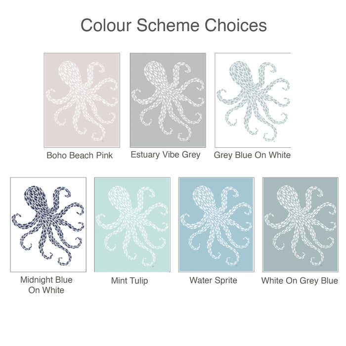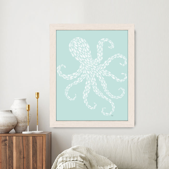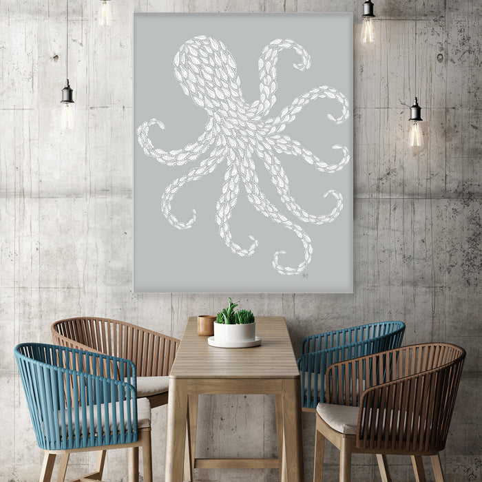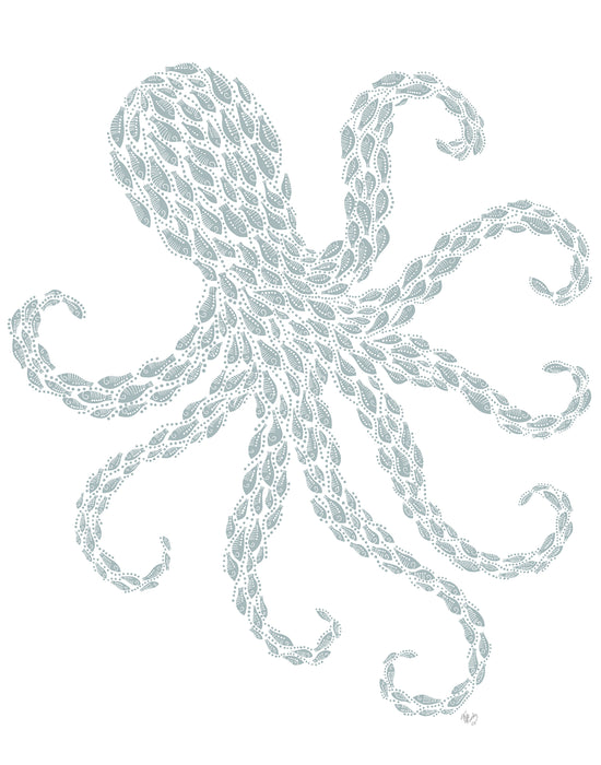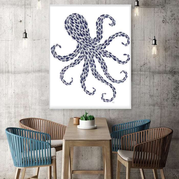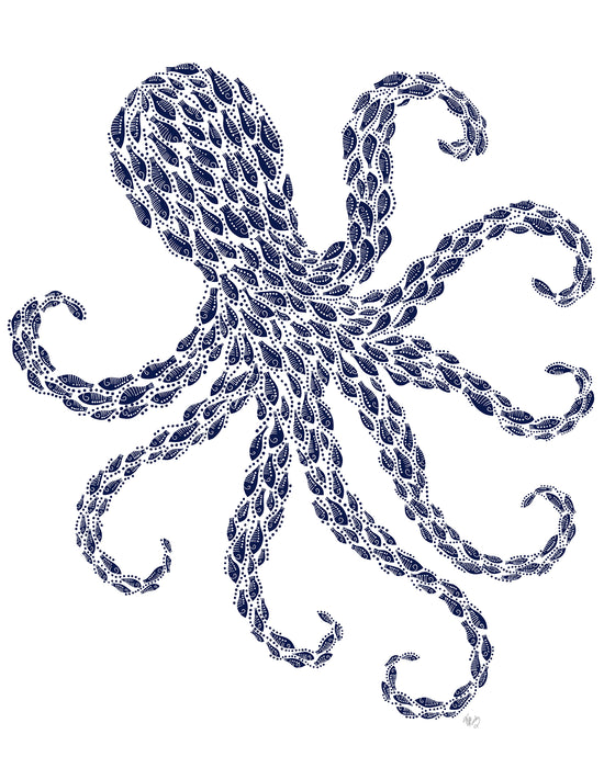 Immerse yourself in the majestic world of the ocean where intricate schools of individually drawn little fishes bring this octopus to life; available in an array of vibrant colours to complement any space.