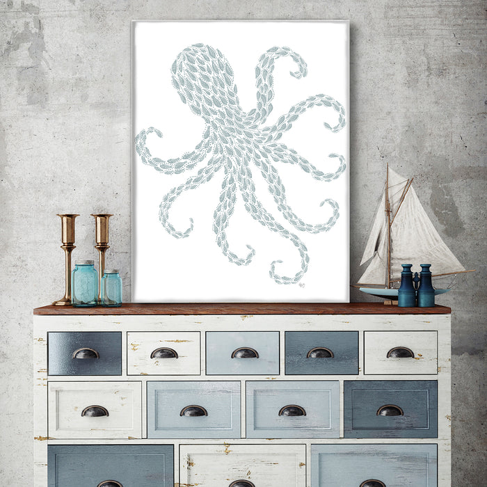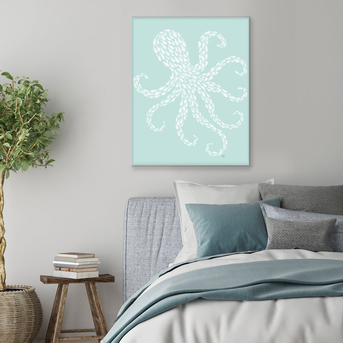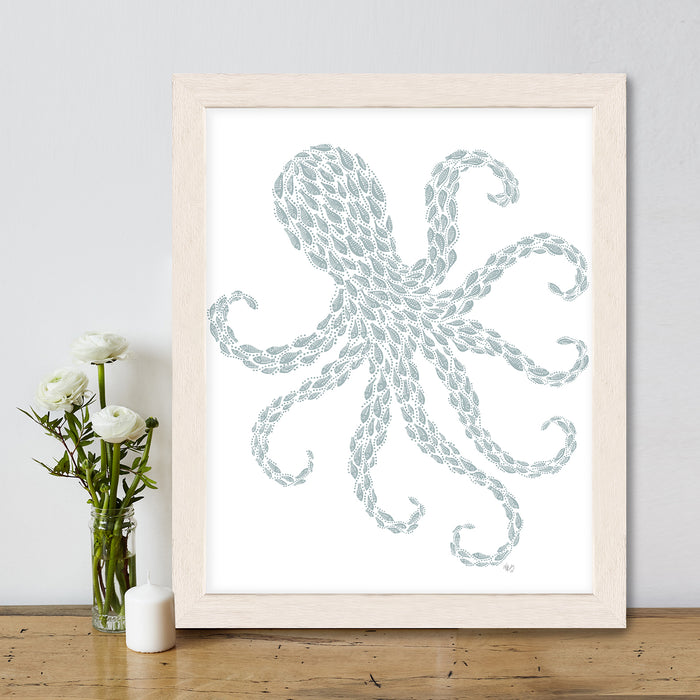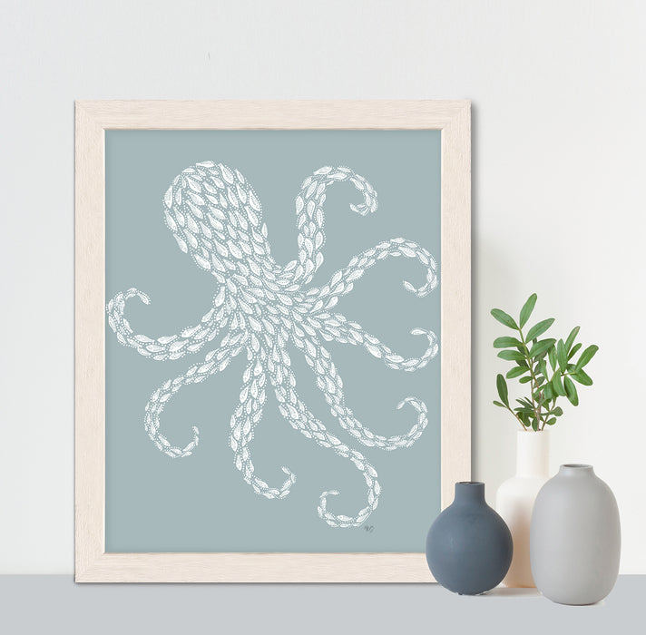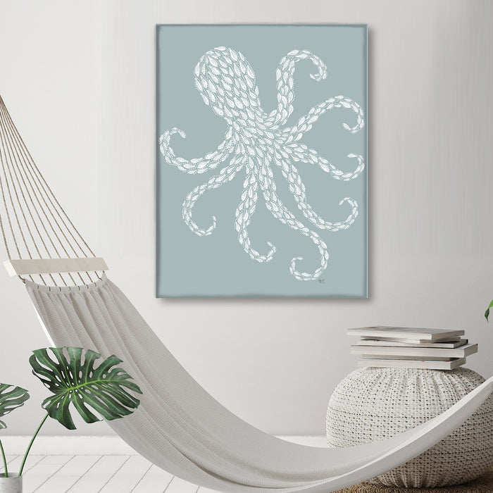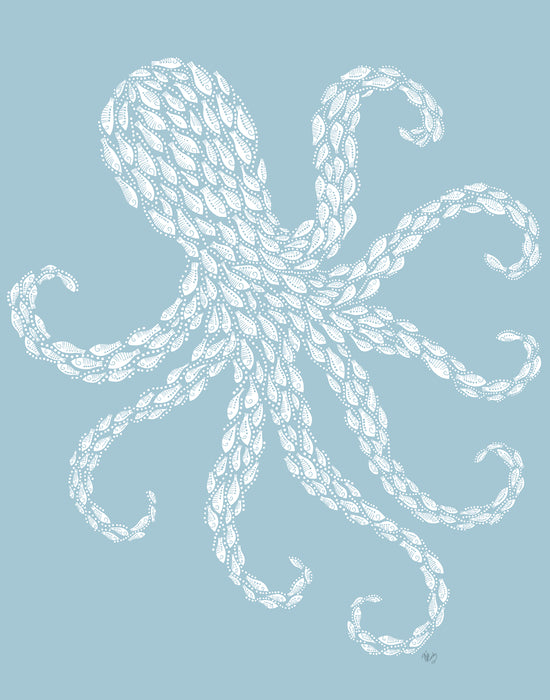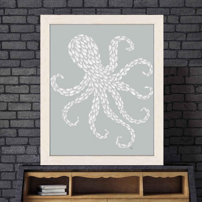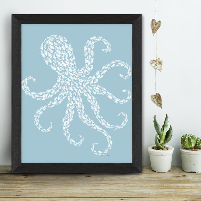 Immerse yourself in the majestic world of the ocean where intricate schools of individually drawn little fishes bring this octopus to life; available in an array of vibrant colours to complement any space.