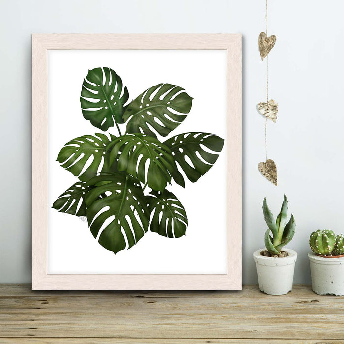 Monstera Plant, Green on White, Botanical art print, Wall art