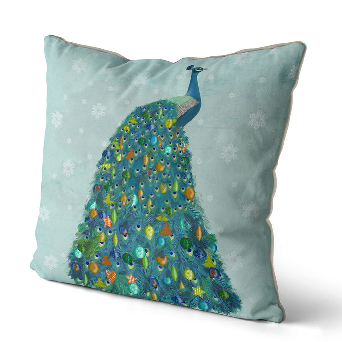Peacock Christmas Tree, Christmas Cushion / Throw Pillow