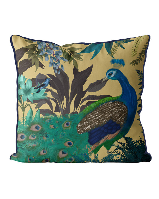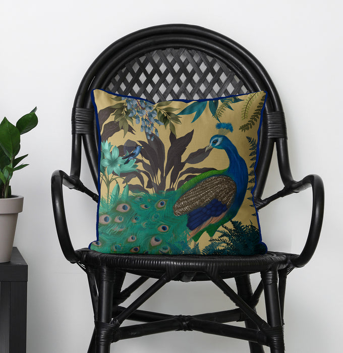 Peacock Garden 1 on Blue or Gold Bird Cushion / Throw Pillow