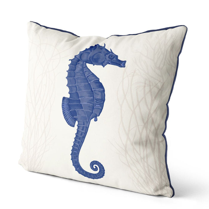 Seahorse and Seaweed, Blue on Cream, Cushion / Throw Pillow