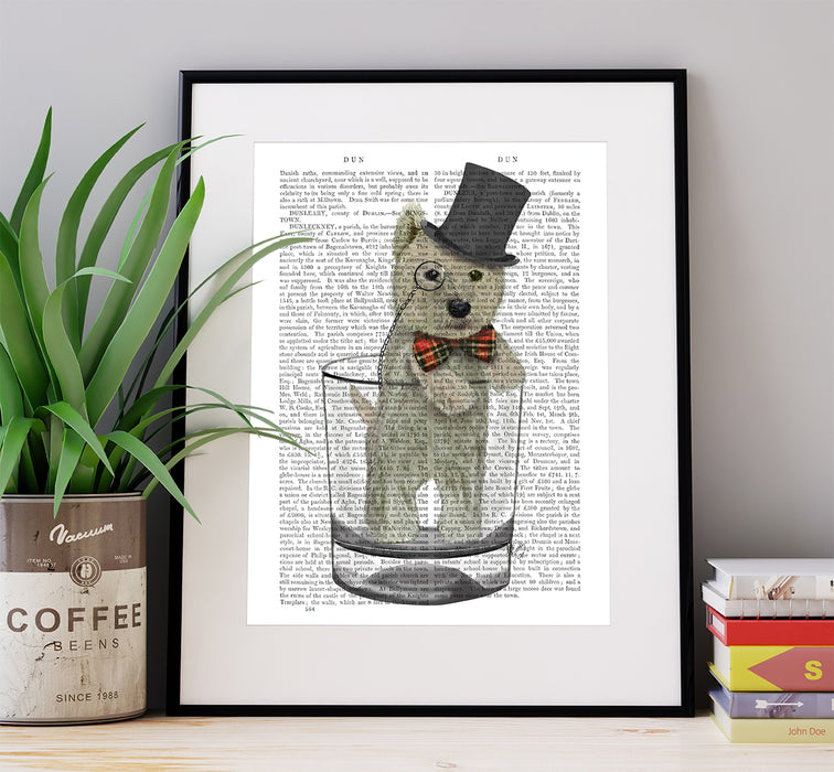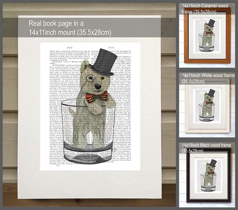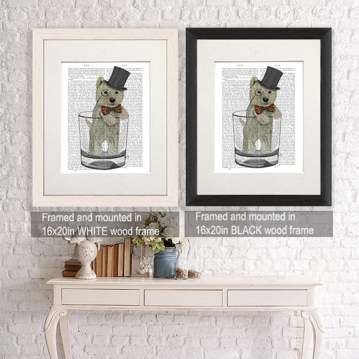 Westie in Whisky Tumbler, Book Print, Dog Art Print, Wall Art